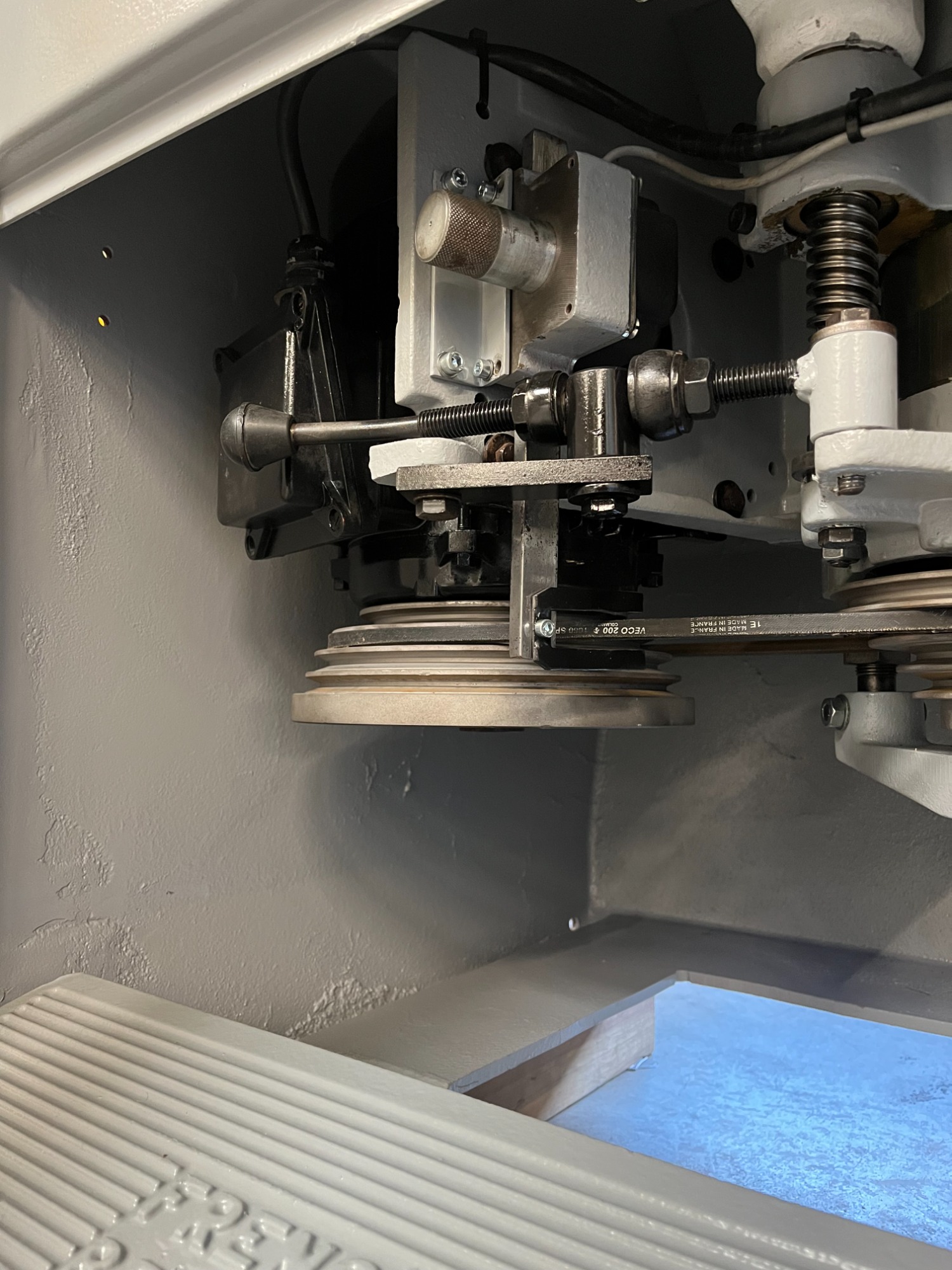 - Réglage de la vitesse par poulie/courroie